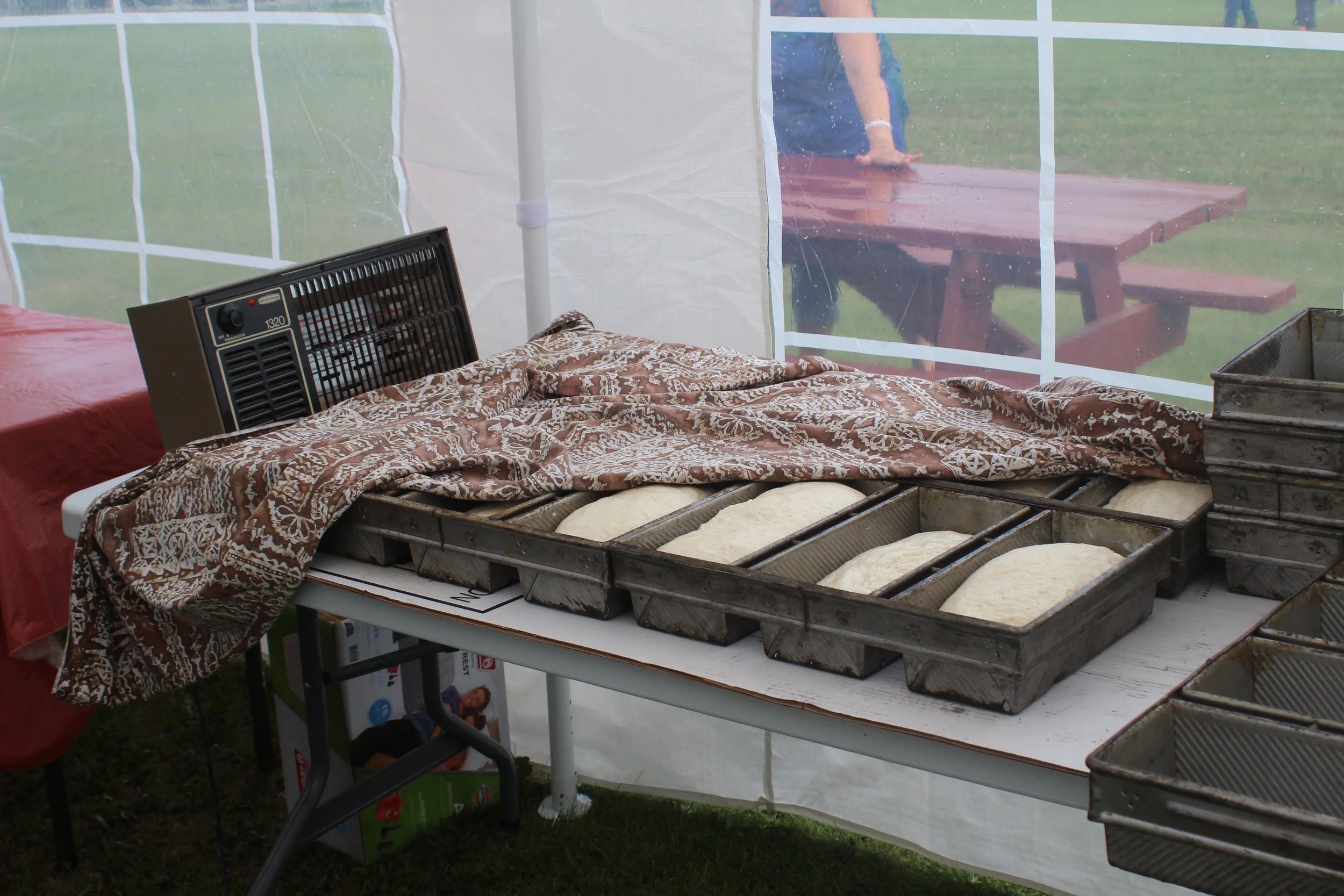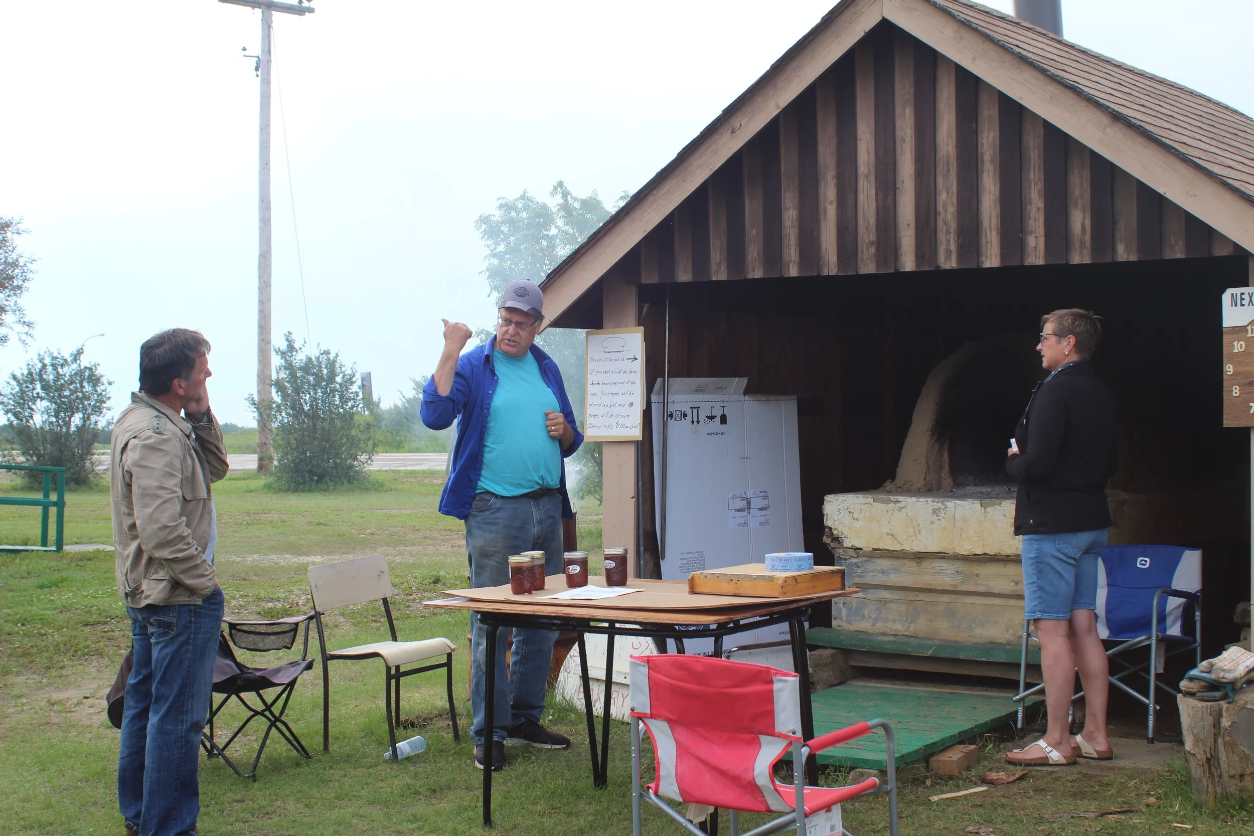 This Ukrainian style outdoor bread oven is made primarily from clay and mud, both easy to source locally. A fire of “Diamond” willow is set in the oven, once the oven is hot enough the coal are removed and the bread is put in. It cooks multiple loaves in an hour, helpful at harvest time to feed the workers.